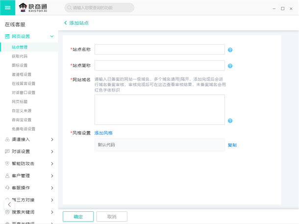 網頁對話客服窗口的鏈接通常都是由第三方服務商提供的,快商通就是一家有著11年運營歷史的品牌,通過快商通客服軟件后臺綁定網站域名就可以直接生成客服對話鏈接,非常容易,下面簡單介紹一下操作過程。