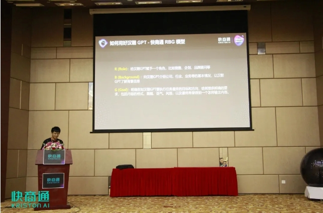 快商通市場產(chǎn)品經(jīng)理陳宏彬用了寫詩、銷售郵件、寫代碼三個場景向大家演示了“漢朝GPT”的卓越能力,演示過程生動有趣,現(xiàn)場不少觀眾紛紛互動,向GPT提問問題,緊接著,陳同學將大家的目光聚焦到消費醫(yī)療,再次演示了營銷師銷冠GPT在消費醫(yī)療中的場景應(yīng)用,我們GPT具備一下幾個特點:自帶高質(zhì)量專業(yè)知識、無需話術(shù)配置即可快速啟用、AI實時生成話術(shù)做到千人千面、具備銷冠營銷思維告別被動應(yīng)答、情緒共振尋找最佳留資時機。同時,利用營銷師銷冠GPT可以真正實現(xiàn)銷冠批量復(fù)制,引發(fā)整個營銷師行業(yè)的震動。