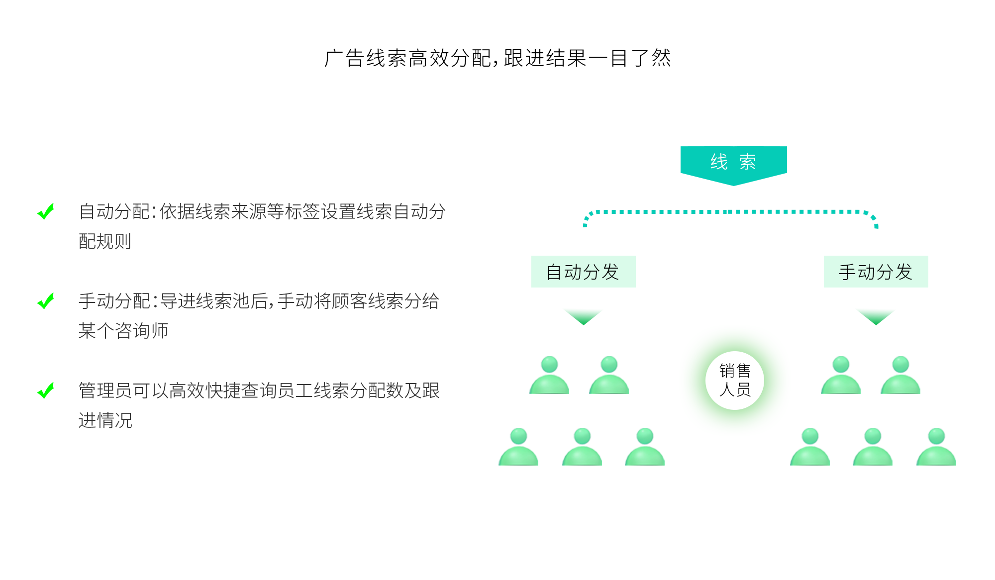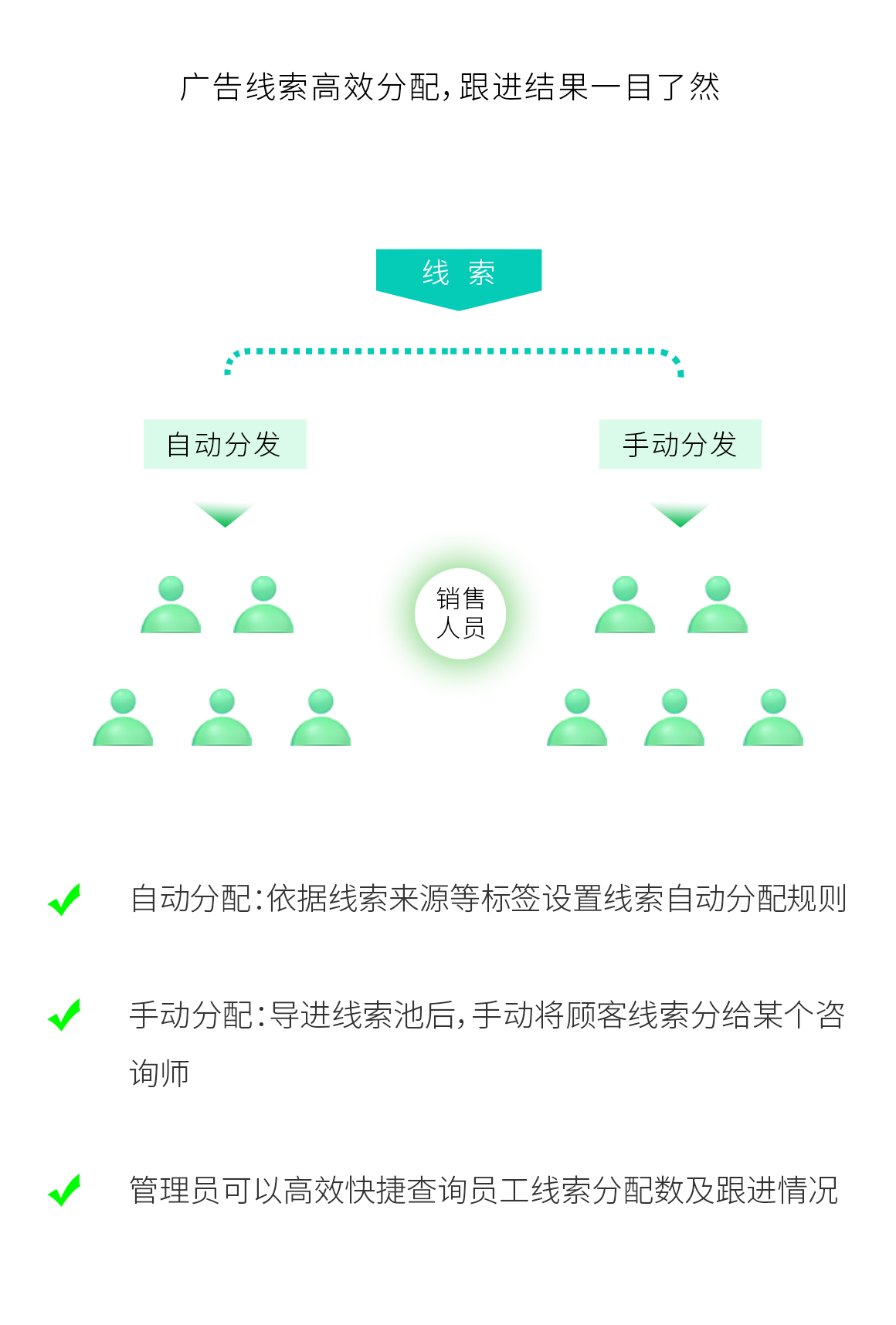 從線索分配到轉化(推廣成本、客服轉化率、上門率……),實時數據看板,全程可視化可干預