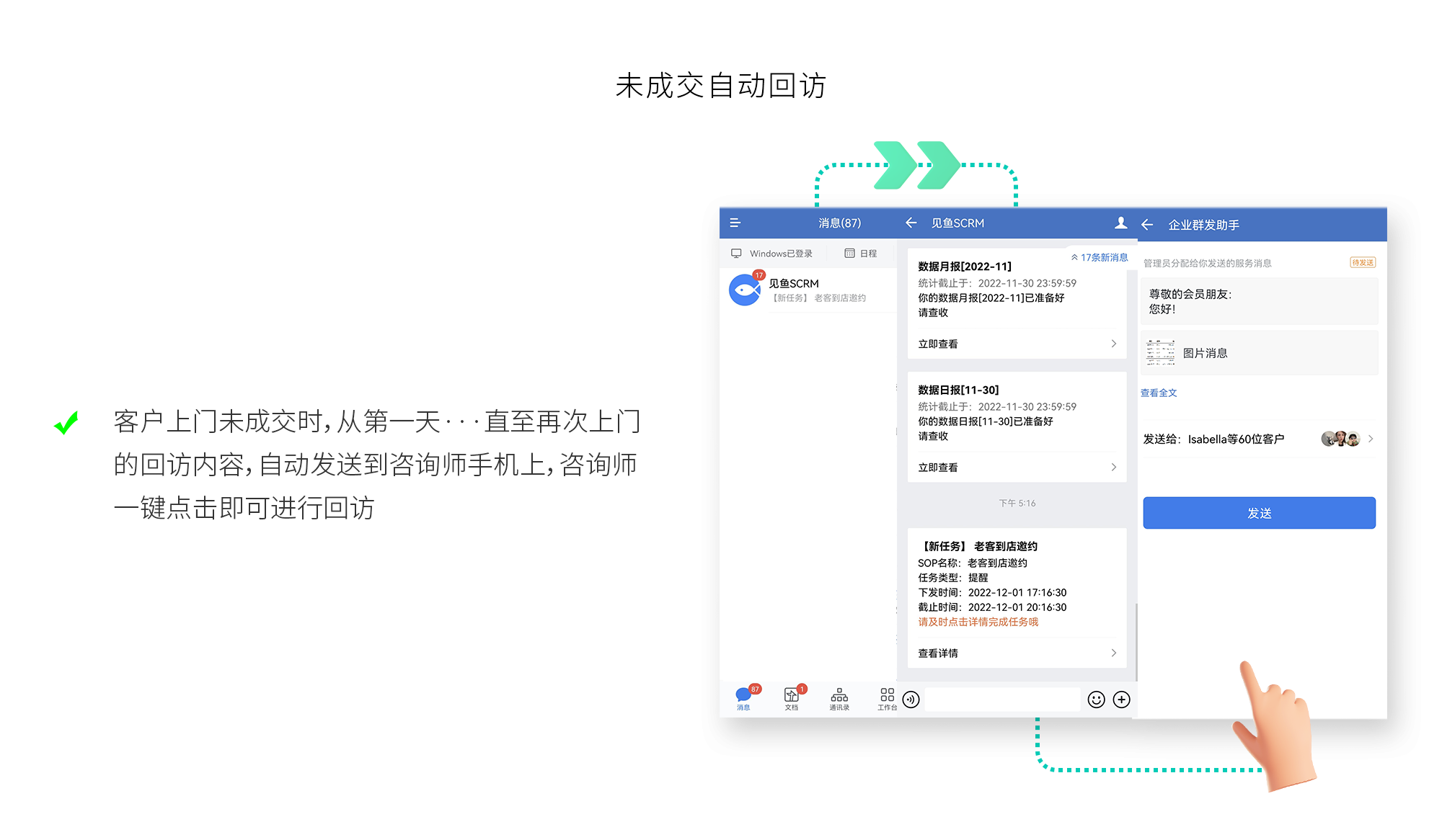 實時保存對話記錄,可設置敏感詞提醒,監控過度承諾、收回扣等異常行為