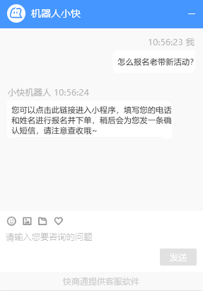 3、機器人沒有情緒,不會不耐煩,能夠持續引導顧客對話,最終報名成功。
