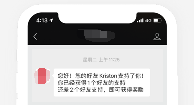 用戶使用裂變海報邀請報名,系統會向用戶推送助力成功的通知↓
